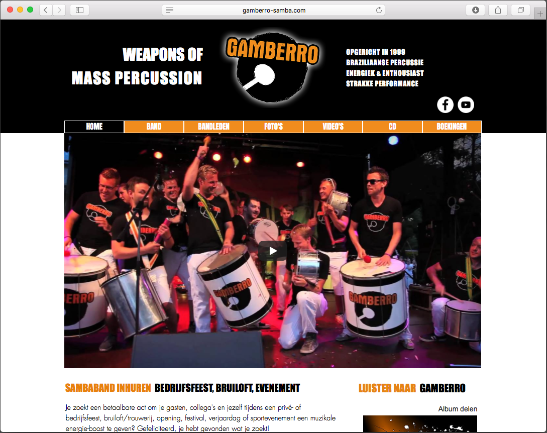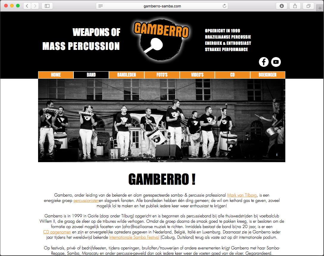 Website • content/teksten • slogan "De samba- & percussieband voor ieder evenement" • vormgeving (CD/album, visitekaartjes, timetables, vlaggen, flyers) • social media